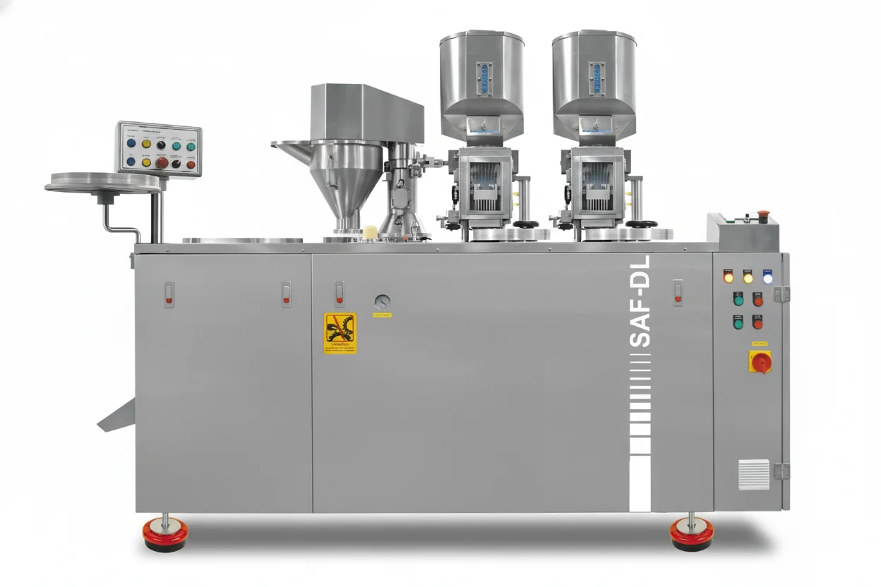 - Loading: A semi-automatic double loader capsule filling machine.
